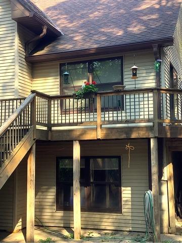 This home has two roof elevations (7' & 30') that run close in proximity due to a gabled end; making downspout placement inconvenient. Our technicians were able to interlink the higher, 7' gutter trough to the lower 30' trough, with a custom 5' downspout extension and two elbows. The 30' section was outfitted with a 16' tip-up downspout that runs through the deck to ground level.